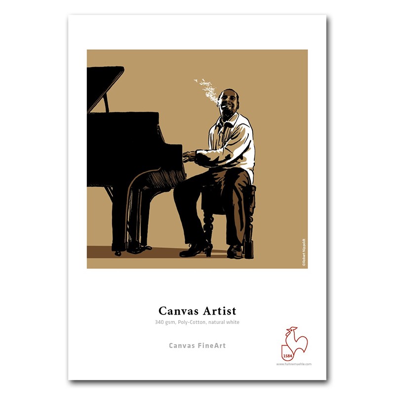 Hahnemühle Canvas Artist ist eine matt gestrichene Inkjet-Leinwand bestehend aus einem Polyester-Baumwoll-Mischgewebe. Die naturweiße Canvas ist frei von optischen Aufhellern und verfügt über eine grobe Leinenstruktur, die den künstlerischen Charakter unterstreicht und eine besondere Haptik und Dreidimensionalität verleiht. In Kombination mit der matten Premium-Inkjet-Beschichtung entsteht ein hervorragendes Druckergebnis mit exzellenter Farb- und Detailwiedergabe, tiefem Schwarz und außerordentlichen Kontrasten. Canvas Artist ist säure- und ligninfrei, erfüllt höchste Anforderungen an die Alterungsbeständigkeit und ist perfekt für die Anfertigung von hochwertigen FineArt Kunstreproduktionen. Aufgrund der Materialelastizität ist die Leinwand sehr gut für das Aufziehen auf Keilrahmensysteme geeignet.