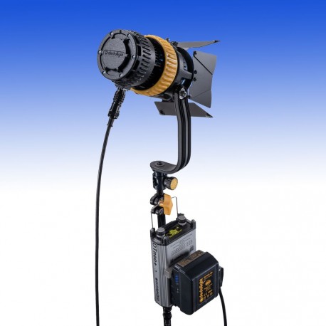 Der Akku bzw. das AC/DC V-Mount Netzteil wird einfach über V-Mount angeschlossen und es ist immer DMX inkludiert. Achtung: Sie benötigen immer noch das Verbindungskabel DPOWN , um Ihre DLEDN (NEO-)Leuchte mit einem DTneo oder DTneo+ Vorschaltgerät zu verbinden.