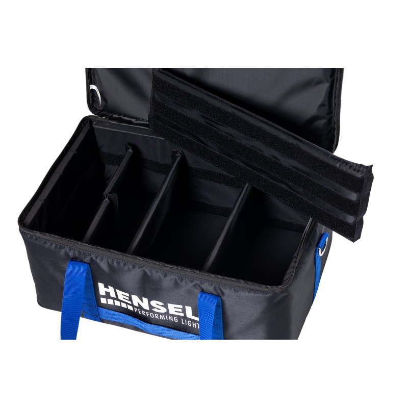 Universell einsetzbar: Die Hensel Gerätetasche ist extrem kompakt und auch ideal zum Transport von Foto- und Studiozubehör geeignet. Sie verfügt über ein individuell teilbares Innenfach, die fünf Trennwände können über Klettbefestigungen blitzschnell und einfach platziert werden. Die zusätzlichen Griffe an Vorder- und Rückseite erleichtern das Handling der Taschen auf ebenen Flächen, z. B. im PKW-Kofferraum. Made in Germany